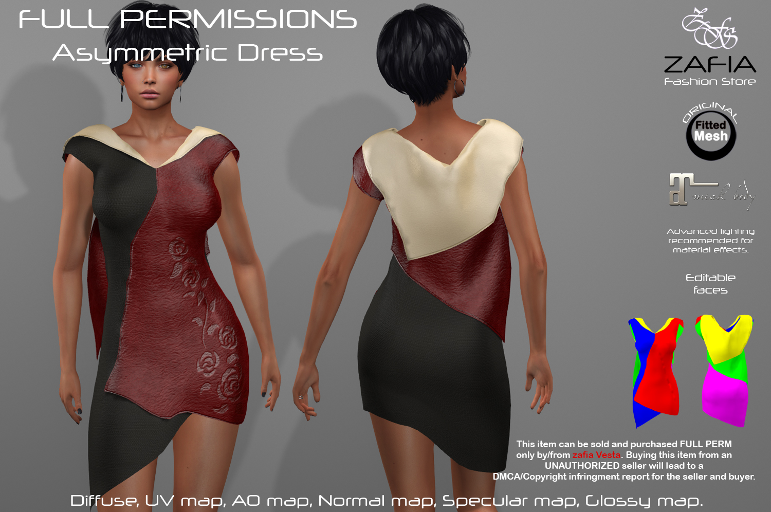 ZAFIA Asymmetric Dress is a FullPerm dress ideal for elegant parties or for the New Year’s Eve.