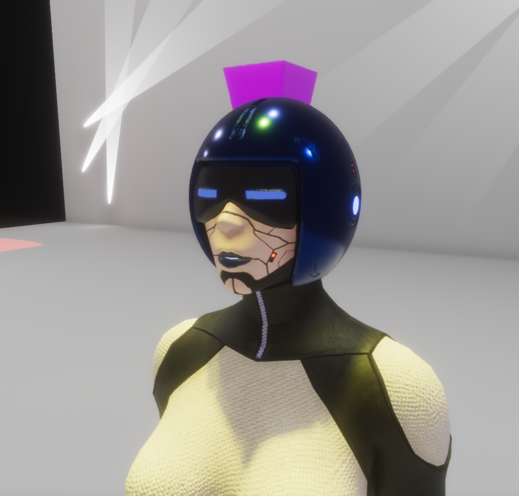 Ritako Cyborg is a Female Custom Avatar. The mesh is optimized with 24,526 tris and a 4k texture and shaders. The rigging has facial animation.
